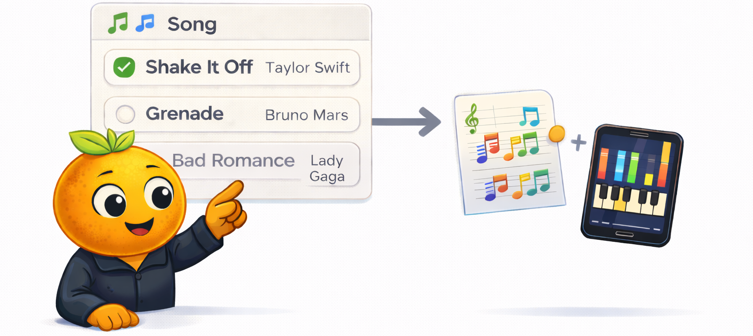 Je choisis la chanson que je souhaite avoir en vidéo ou en partition colorée. (Taylor Swift, Bruno Mars, Lady Gaga...)